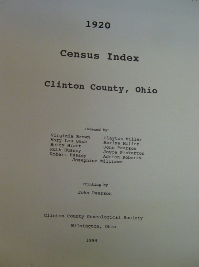 Book: Census Index, Clinton Co., OH – 1920