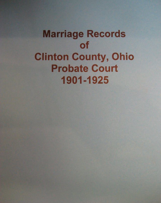 Book: Marriage Records, Clinton Co., OH – 1901-1925, Probate Court
