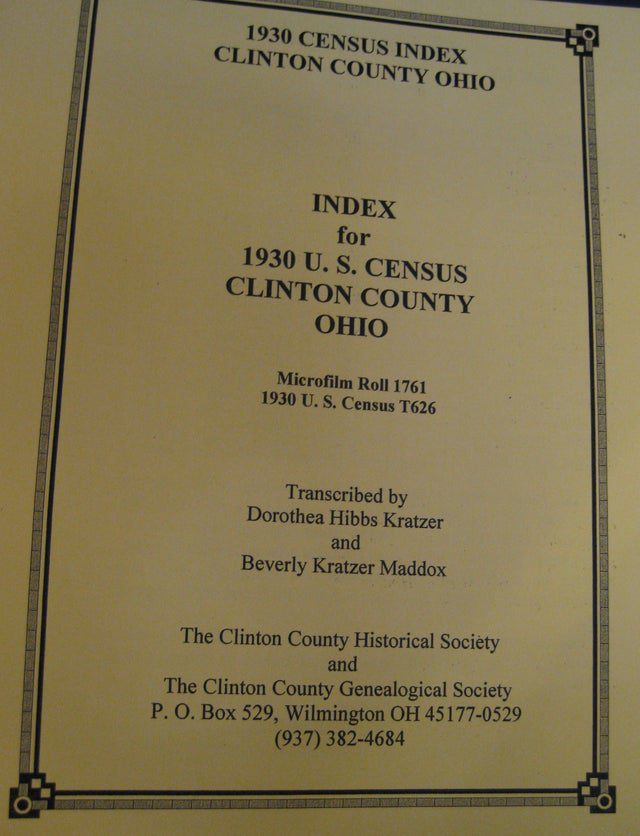 Book: Census Index, Clinton Co., OH – 1930