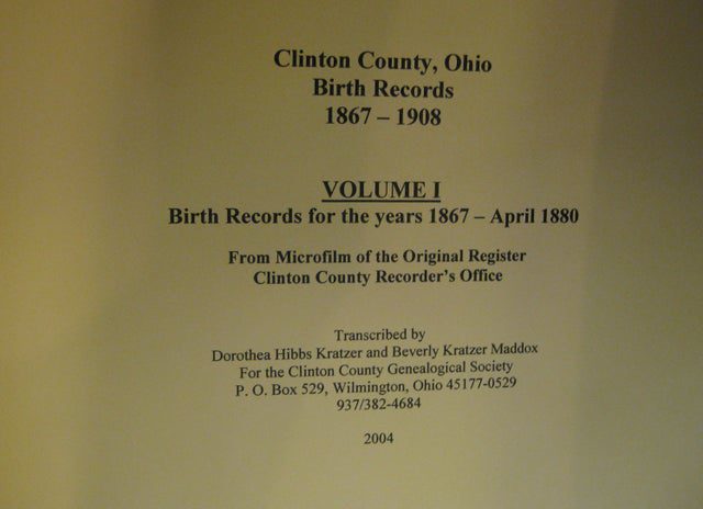 Book: Birth Records Vol 1, Clinton Co., OH – 1867-1908