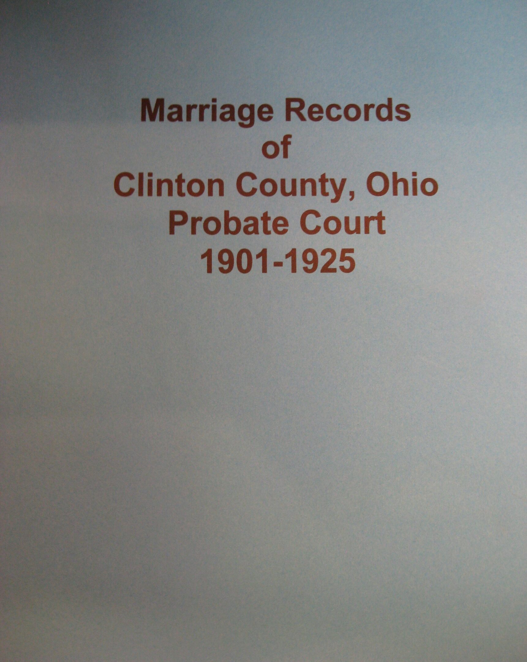 Book: Marriage Records, Clinton Co., OH – 1901-1925